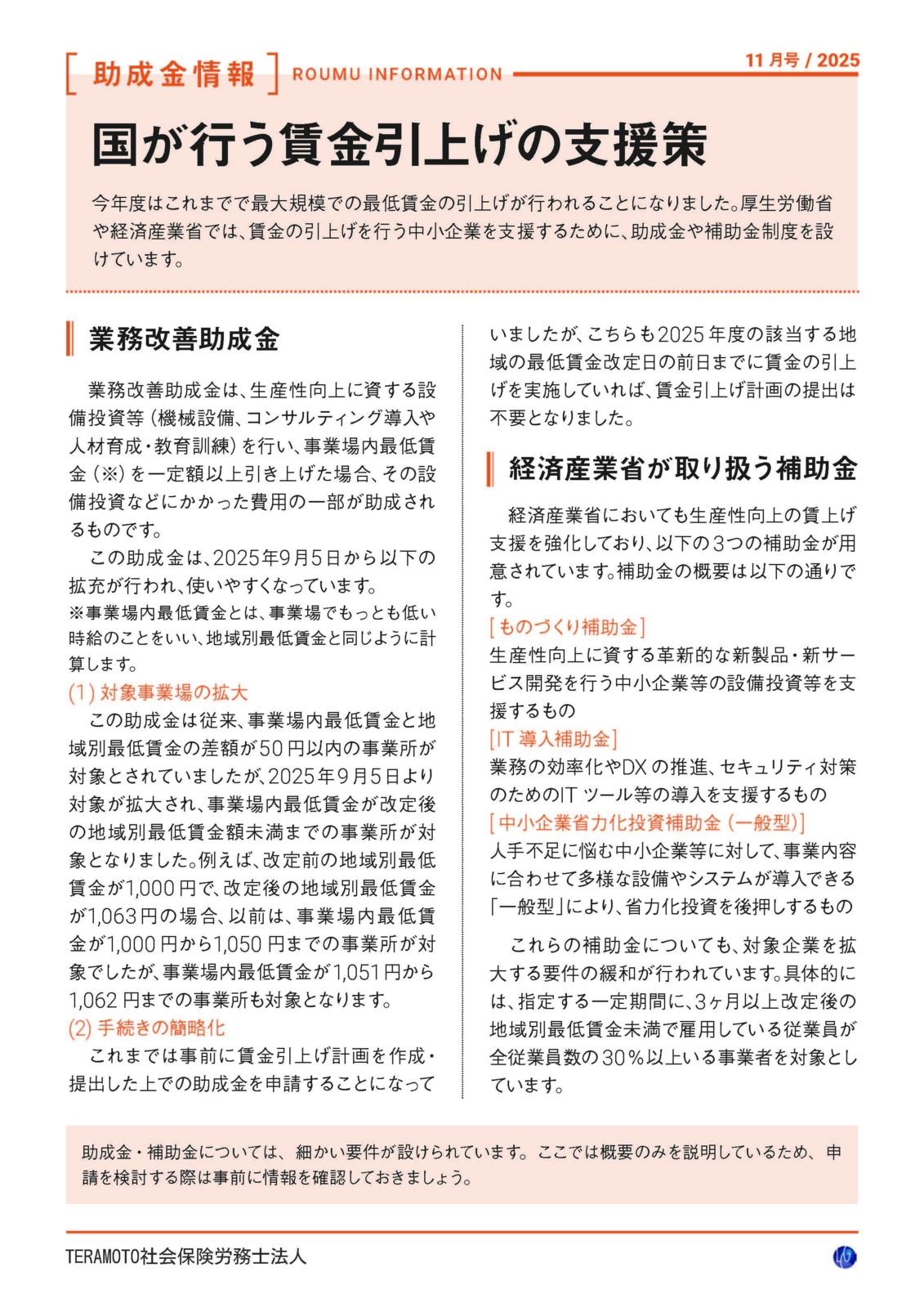 今回のテーマになっている「国が行う賃金引上げの支援策」について、厚生労働省からより詳細な案内が出ておりますので、あわせてご確認ください。