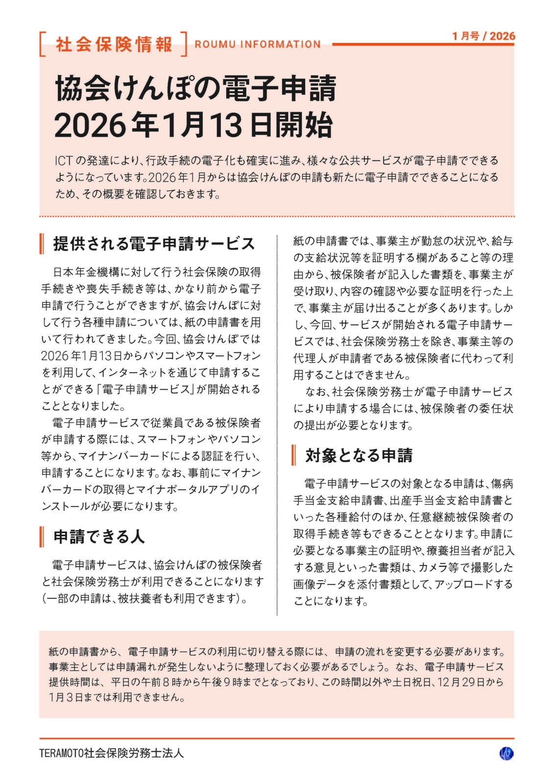 本日1月13日より、協会けんぽの電子申請が開始されました。