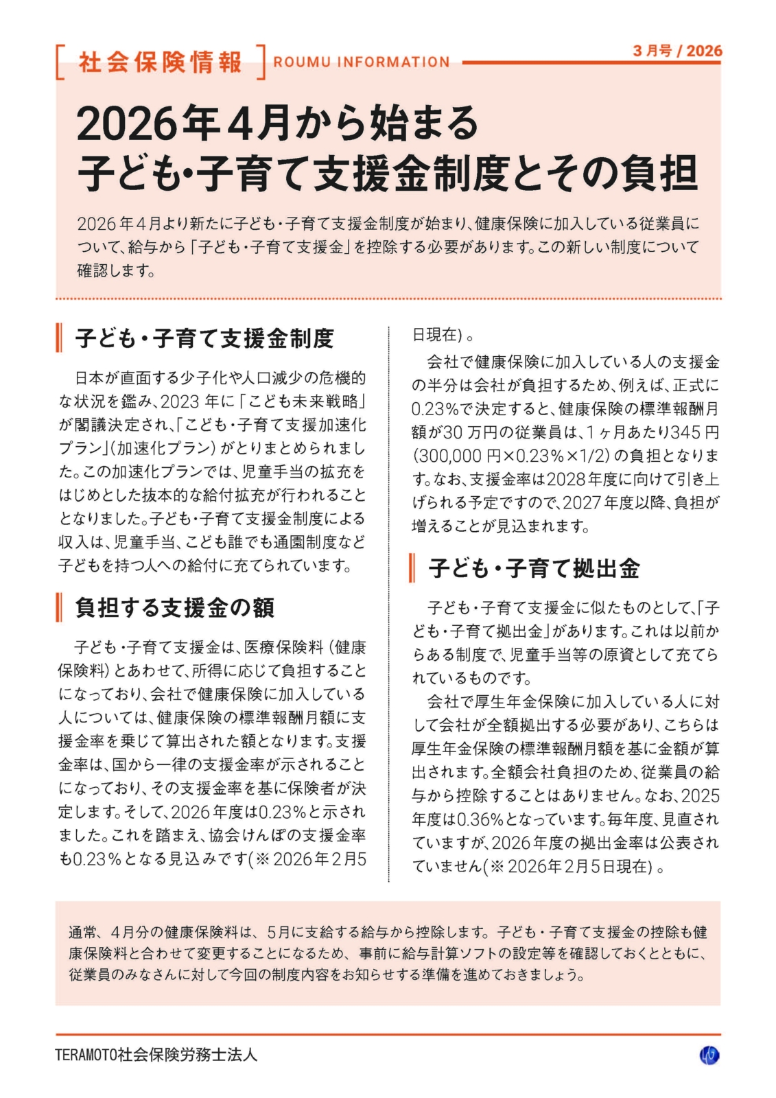 2026年4月から新たに「子ども・子育て支援金制度」が開始され、健康保険加入者の給与から控除が始まります。